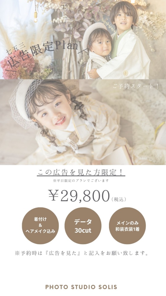 七五三撮影がお得に撮影できるプランをご用意いたしました