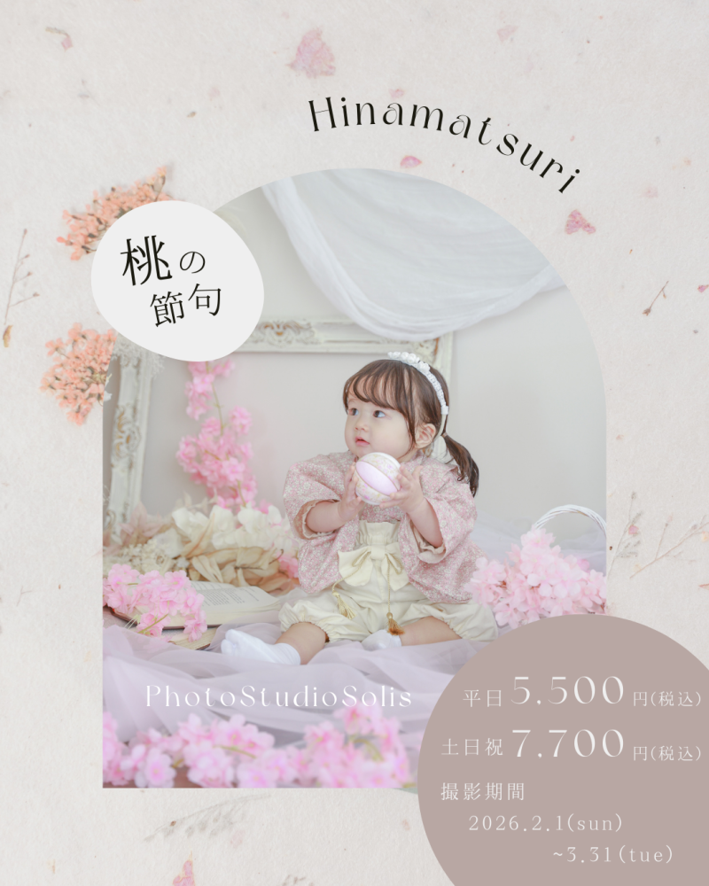お待たせいたしました🤍お子さまの初節句はもちろん、初めてでなくてもOK!ひなまつり限定ブースで思い出に残るお祝いをしませんか?🐰🌸着物やドレスを着て、桃の花やソリスオリジナルのひな人形と一緒に撮影ができます🍑